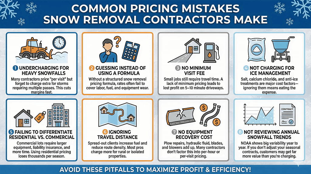 Here are the pricing and operational mistakes that trip up contractors the most, beyond what software can fix. These are the patterns that drain profit, slow teams down, and cause preventable losses every winter: