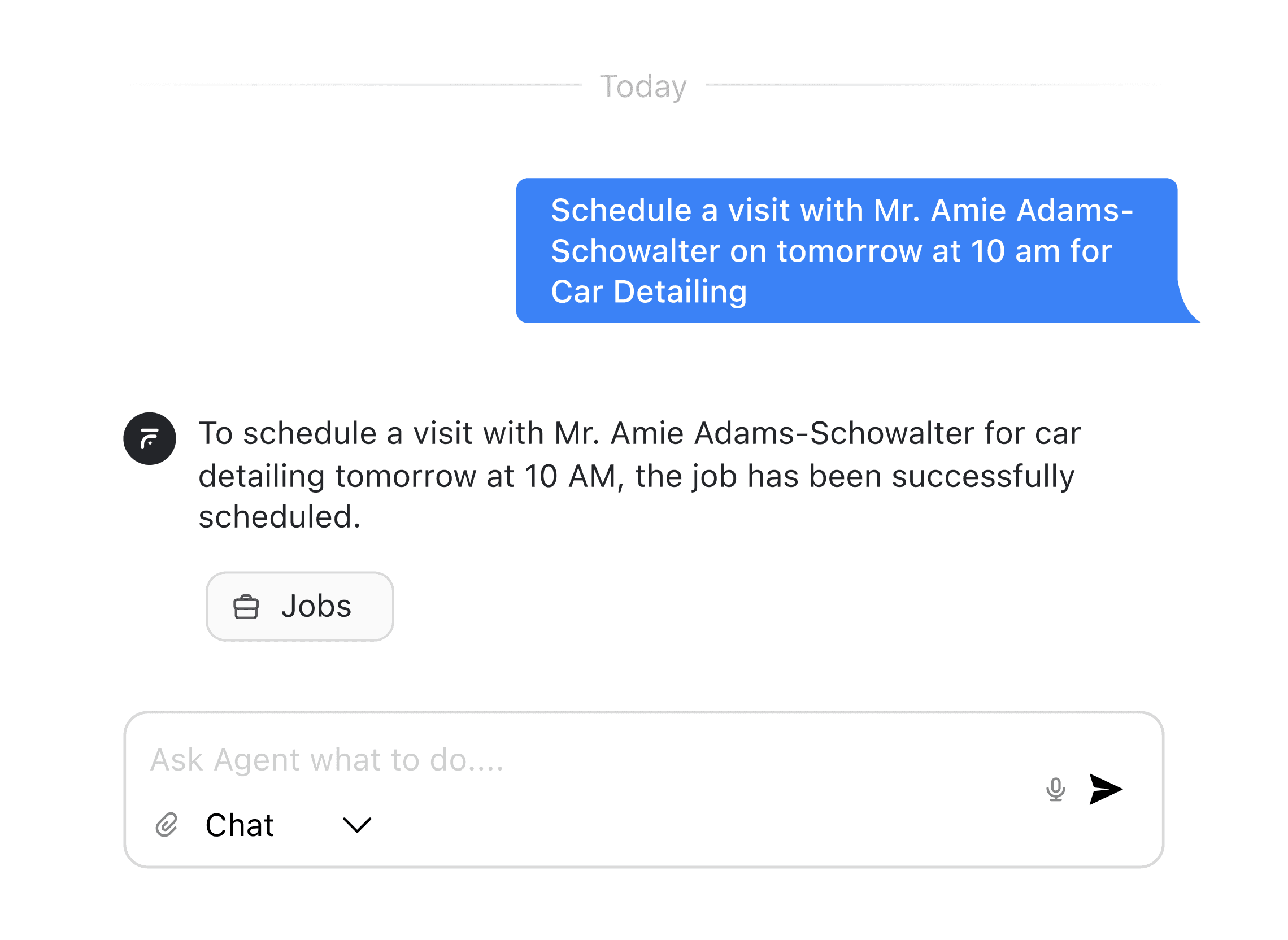 Skip the admin chaos. Ask your AI to schedule visits, create estimates, or update project milestones instantly.