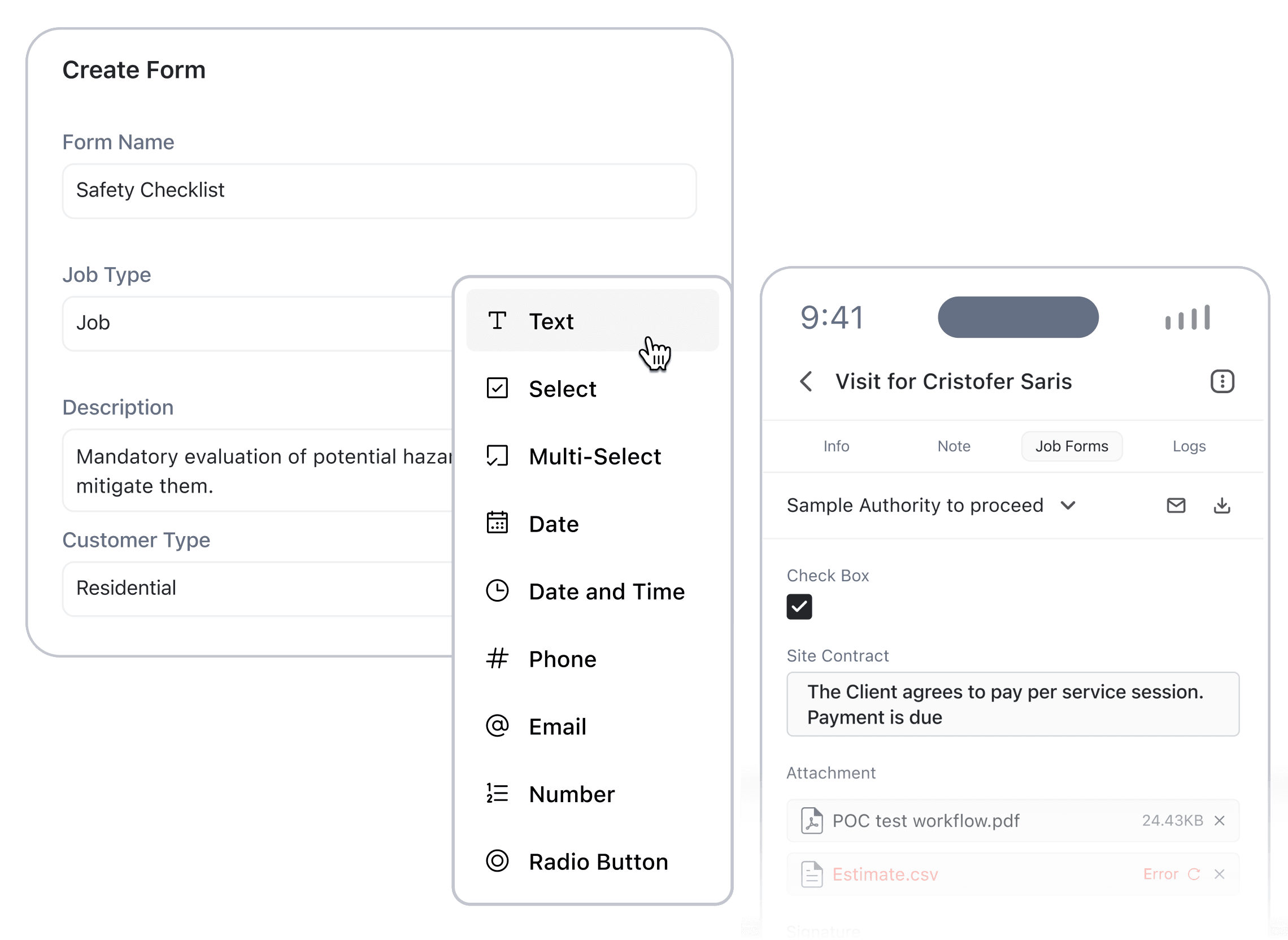 Drag. Drop. Design. Every job is different. Let FieldCamp’s form builder fit your process, not the other way around. Add fields, reorder steps, and make your checklist reflect exactly how your team works.