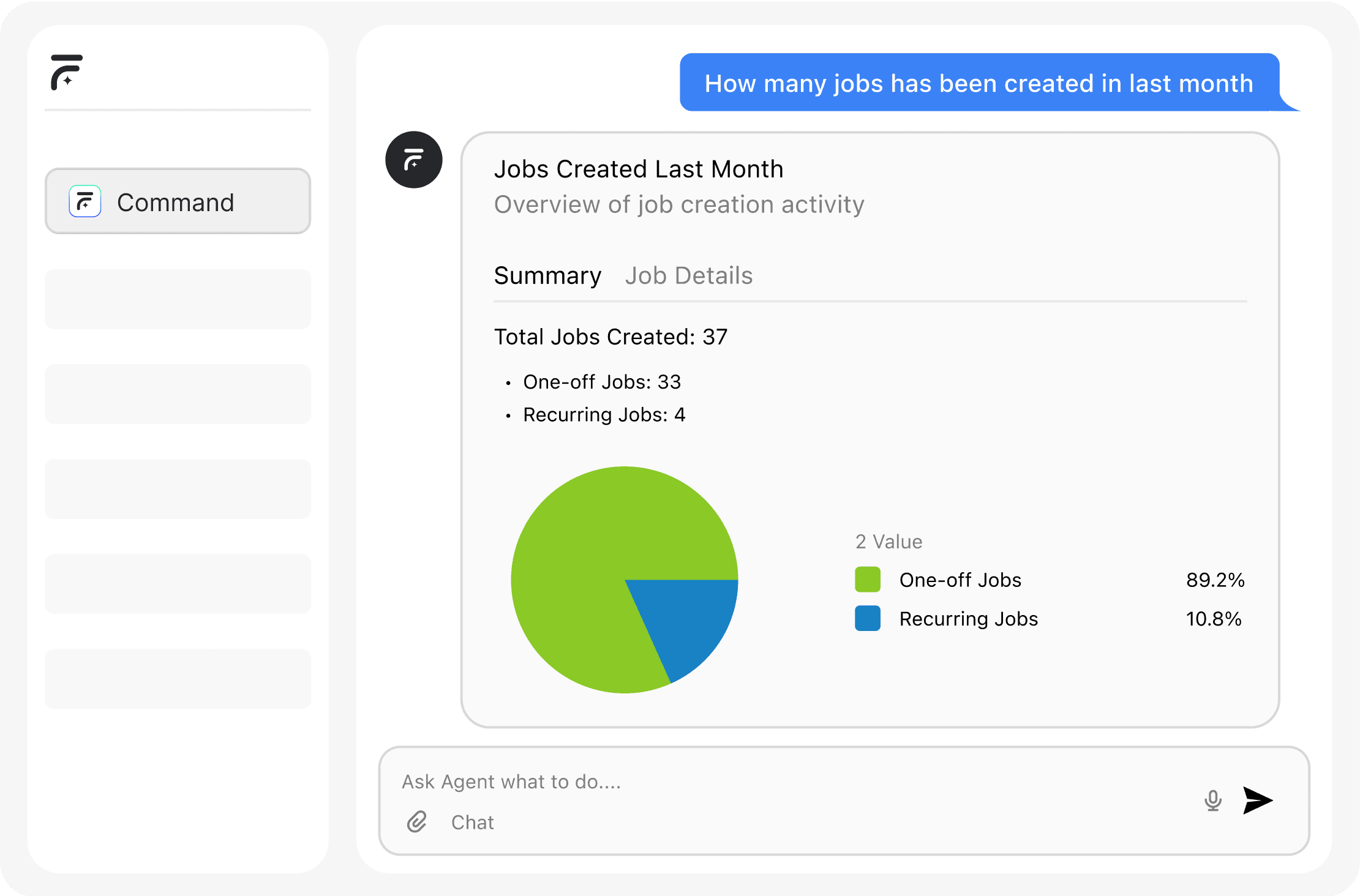 It connects all your data from scheduling to invoicing into one dashboard. You can track metrics, filter by time or team, and even use AI to build custom charts. Reports auto-refresh, export easily, and can be scheduled for weekly summaries.