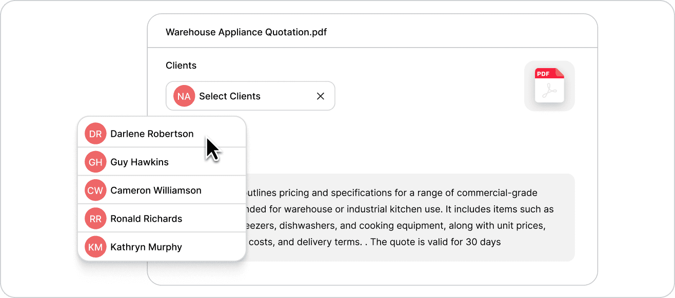 Our AI identifies file type, content, and context — then auto-sorts everything into the right folders for jobs, contracts, or projects.