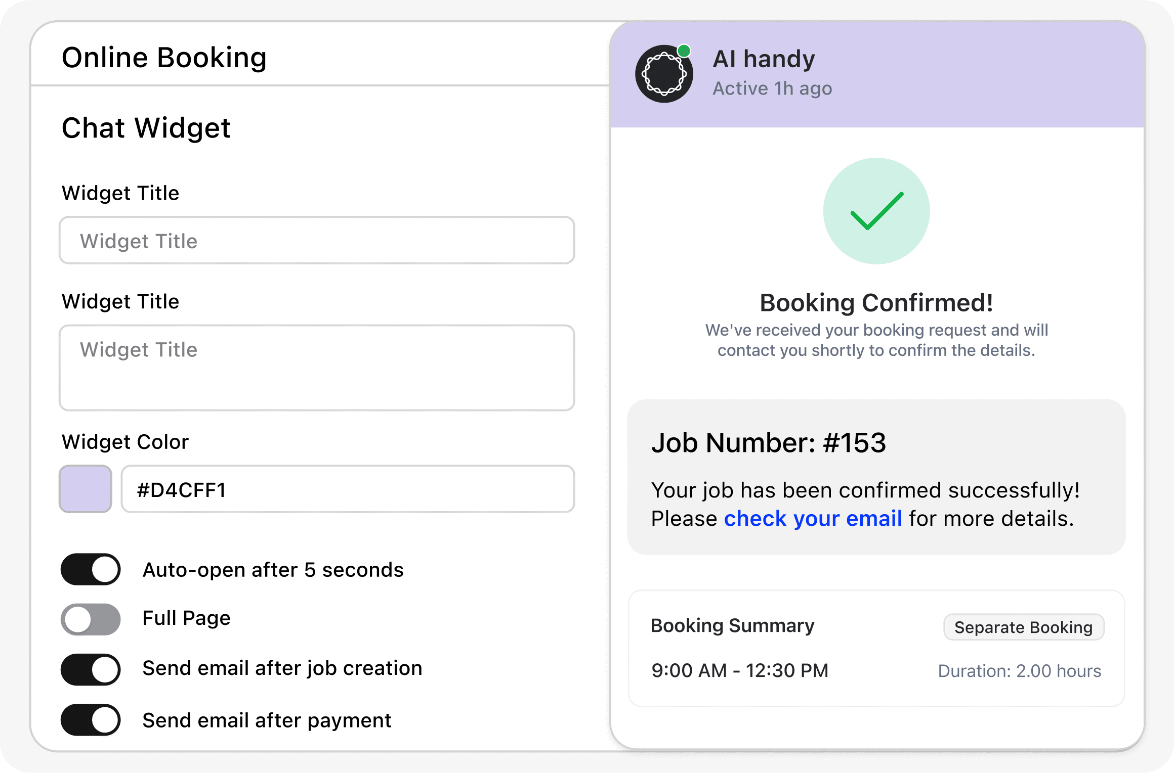 Never miss a job again. FieldCamp’s online booking system lets clients schedule anytime, so you wake up to more bookings, fewer missed calls, and zero lost opportunities. Everything syncs automatically. No late-night phone tag, just your calendar working for you.