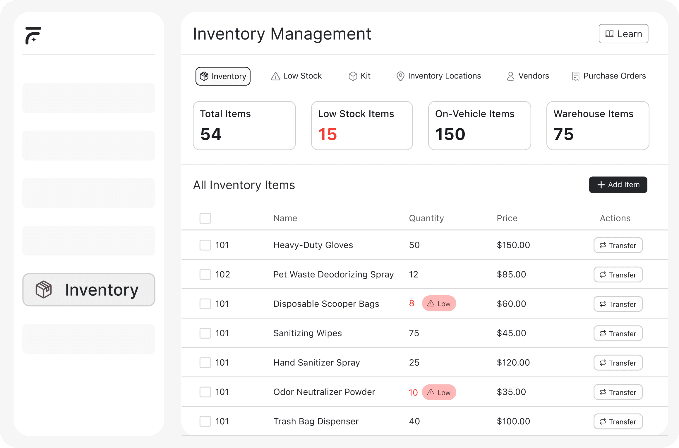 Stop guessing what’s in stock. Instantly track supplies, get low-inventory alerts, and see which items go where. FieldCamp’s inventory management lets cleaning businesses stay prepped, with every cleaner equipped and no more “out of stock” headaches to slow you down.