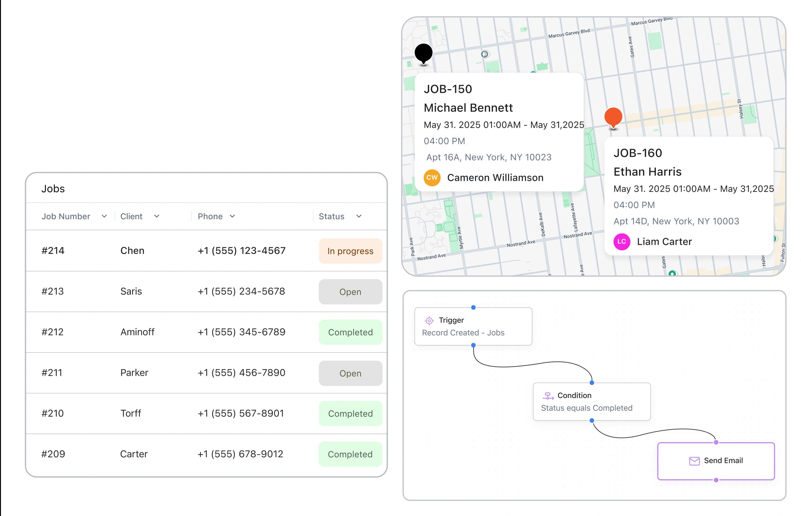 FieldCamp AI brings automation to life. It’s the unique field service automation that listens to your command. Just say to add clients, schedule a job, extract reports, send emails, it’s all done instantly in just a few taps.