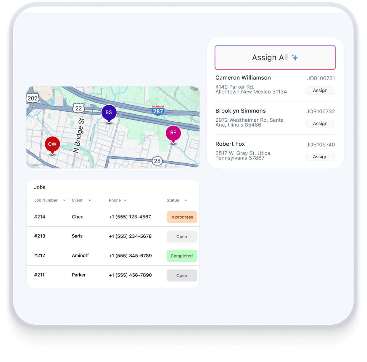 All appointments and crew schedules sync instantly, reducing missed calls or overlaps.