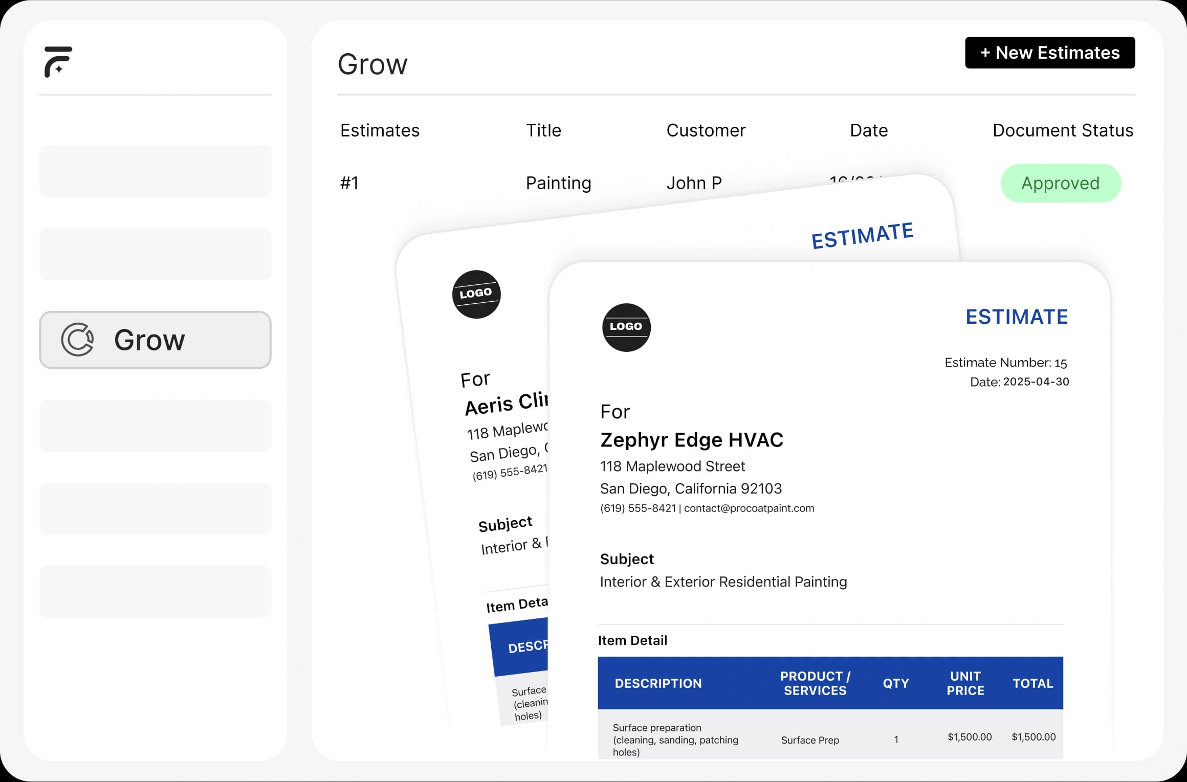 Create professional and accurate estimates that reflect your HVAC brand and justify the services you deliver. Add flexible line items, apply automated tax calculations, and attach important documents, contracts or digital signatures to justify your services. The software even converts your estimates into invoices, track approvals in the client portal, and close deals faster without repetitive work.
