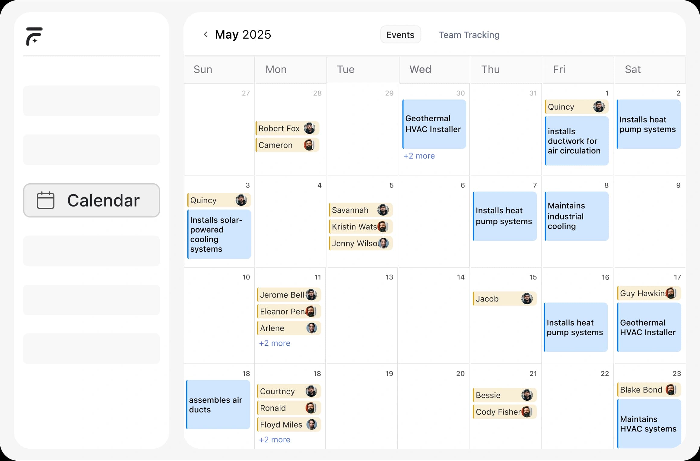 An HVAC scheduling app manages technician calendars, job assignments, and reminders. FieldCamp’s HVAC scheduling software prevents double bookings, optimizes time, and ensures your techs arrive on schedule.