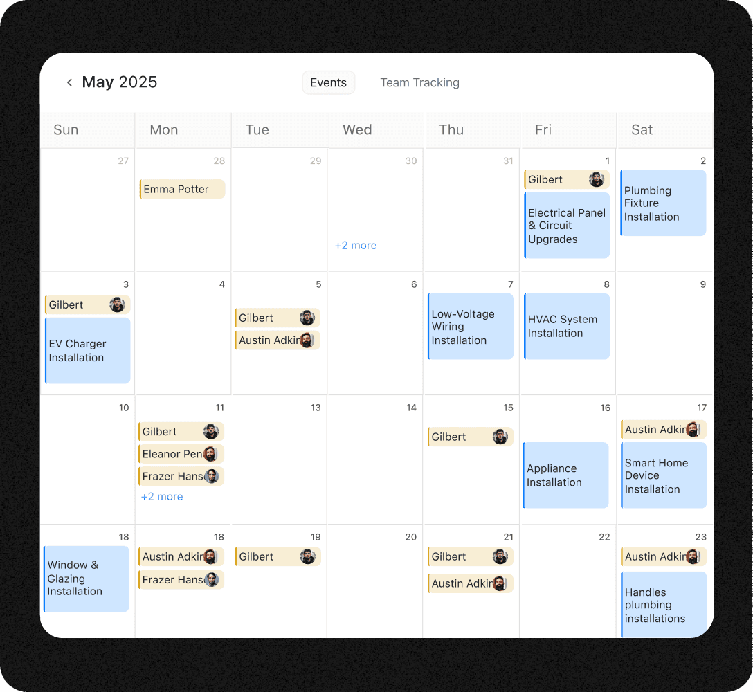 Assign installers, manage timelines, prevent overlaps, and track job progress from one clean dashboard. With AI-suggested time slots and conflict-free scheduling, your installation team moves from job to job efficiently.
