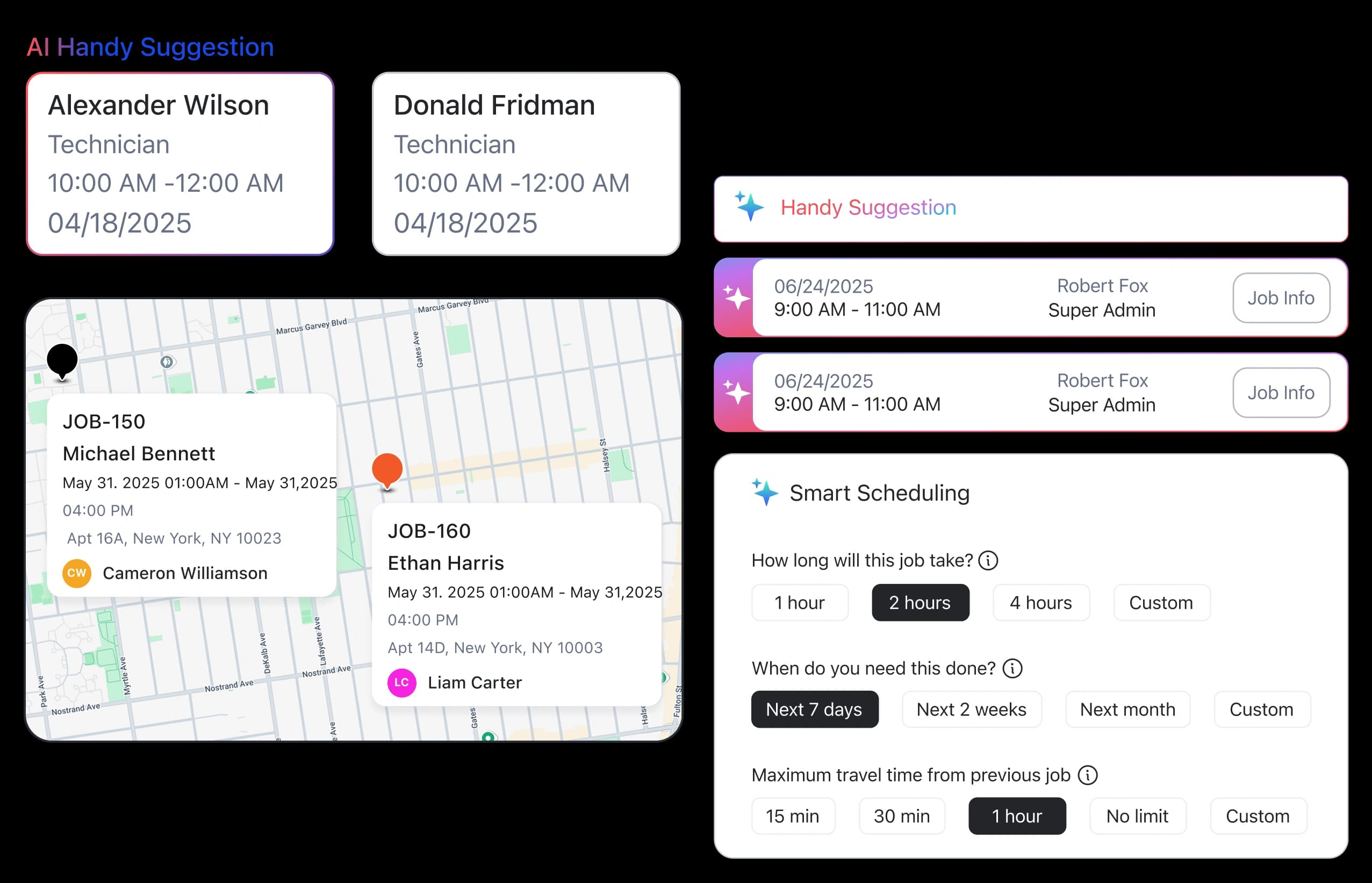 Just ask Handy to add or update client info. All history and notes are organized automatically for faster follow-ups.