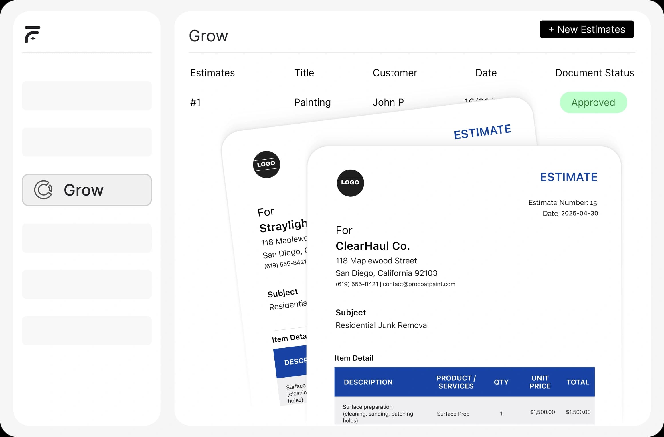 FieldCamp makes quoting and billing effortless. Create branded estimates, capture digital signatures, and convert them into invoices with a single click. Accept cash, card, or digital wallet payments through Stripe and sync them automatically with QuickBooks — keeping your books accurate and cash flow consistent.