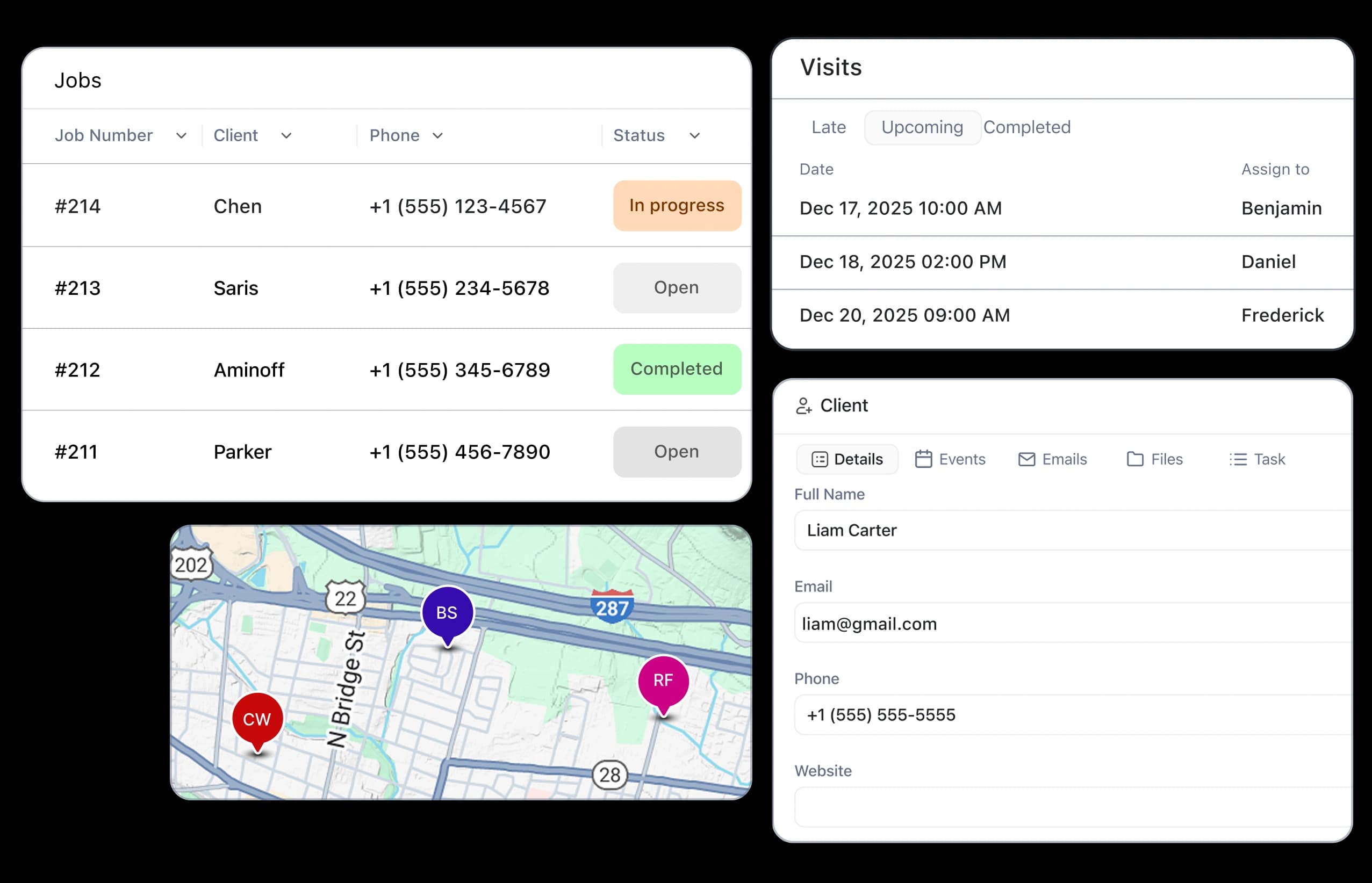 Manage pest control scheduling, jobs, and records anywhere with FieldCamp’s mobile app. Stay connected and keep operations smooth from the field to the office.