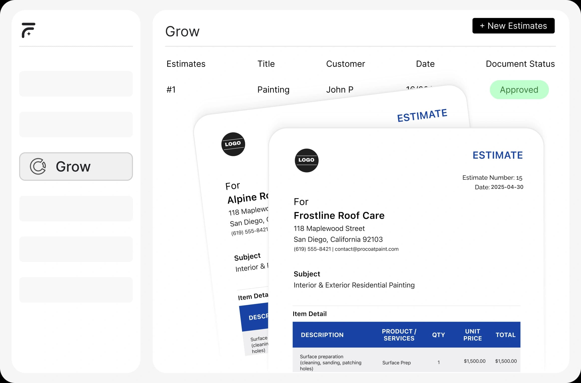 With FieldCamp’s roofing estimating software, you can create detailed quotes in minutes. It automatically calculates labor, materials, and taxes, helping you send clear, professional bids that win more roofing jobs every time.