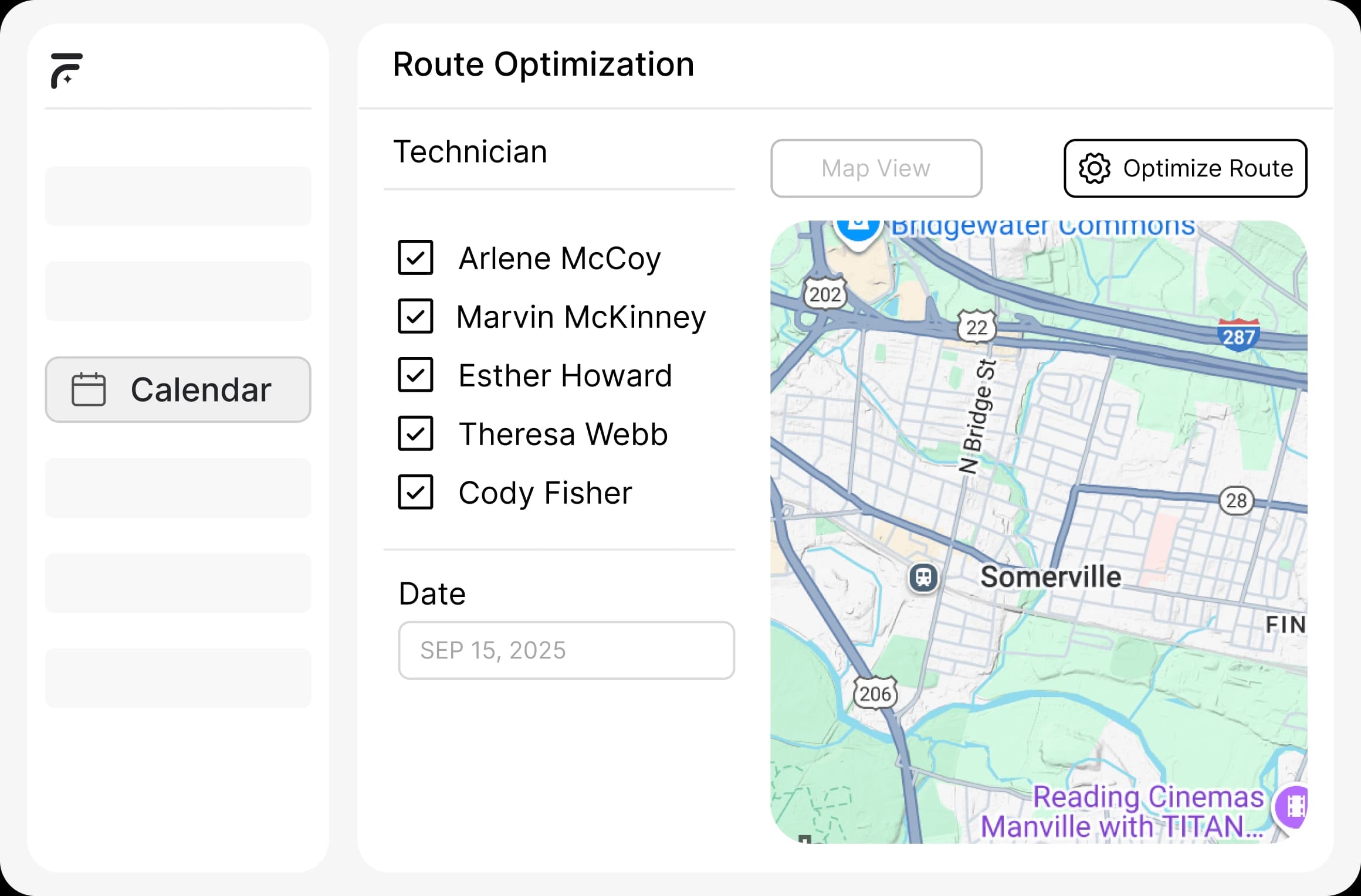Get every team where they need to be without the back-and-forth calls. FieldCamp’s roofing dispatch software has route optimization to help you send the team to the job, save drive time, and boost productivity on every project.