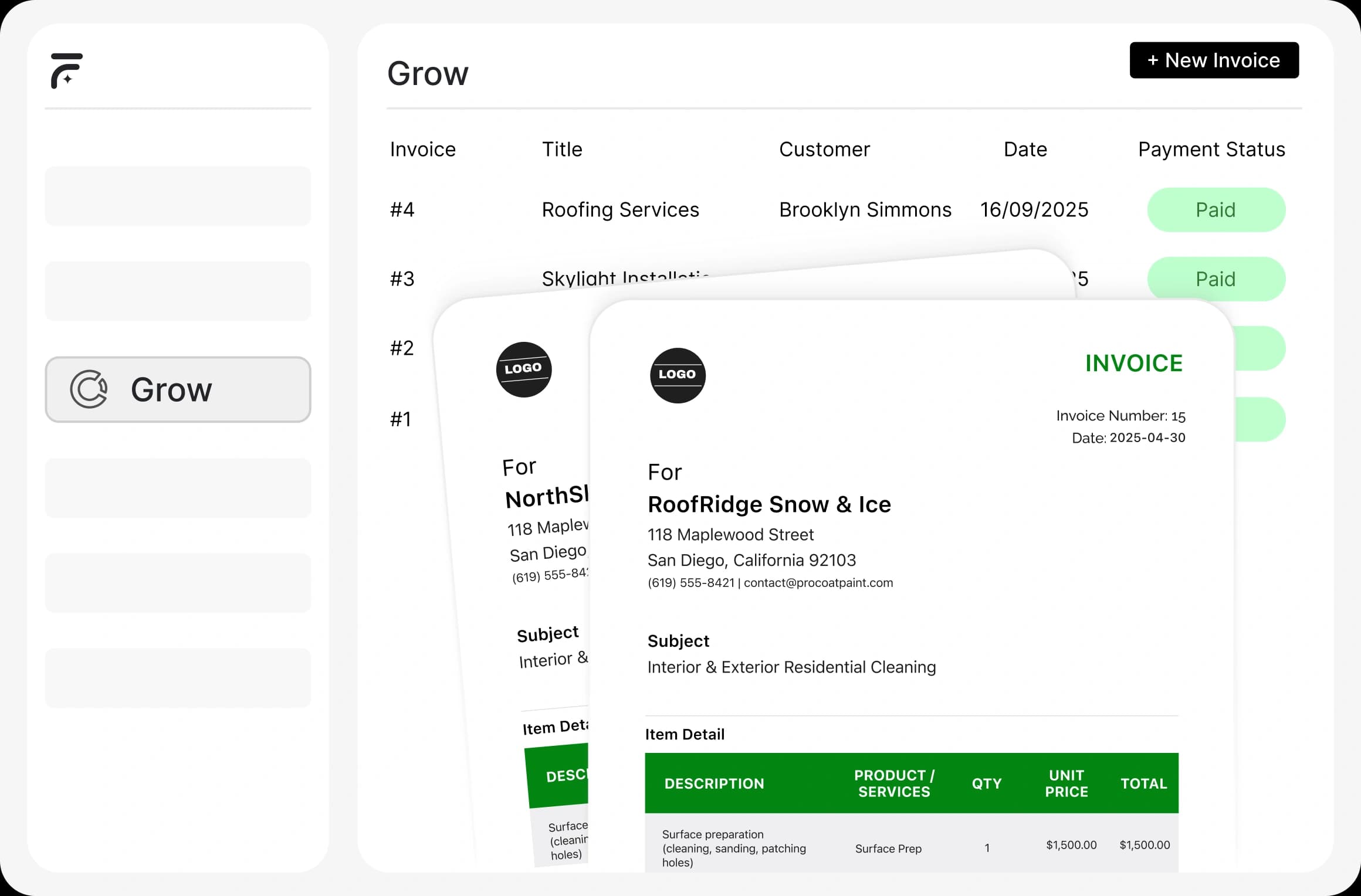 Turn finished jobs into invoices instantly with FieldCamp’s roofing invoicing software. Track every payment, send reminders, and keep cash flow steady. It’s the easiest way to stay organized and get paid faster for your roofing work.