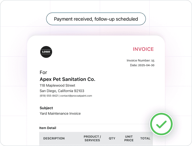 Normally, you’d send an invoice, process payment, update CRM, and send a review request, spending fifteen minutes every time.