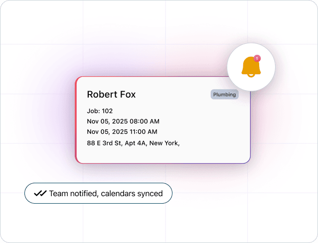 Call answered, job details captured, appointment booked, all automatic.