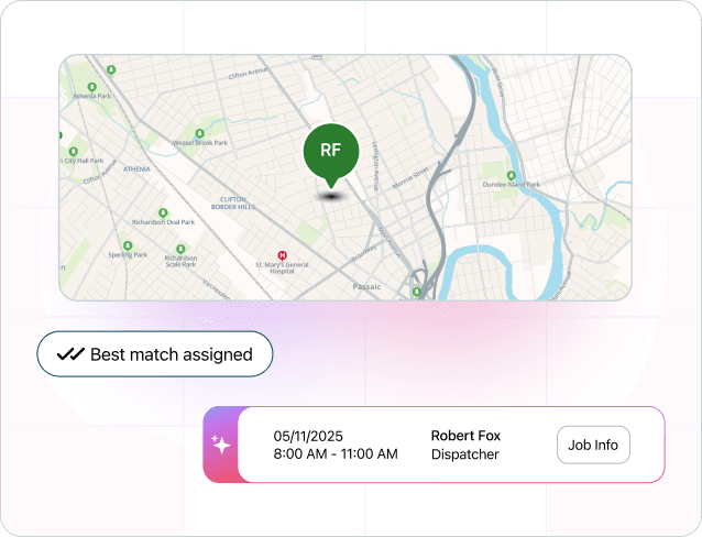 We match each job to certified techs based on skills, past jobs, and location. No more guessing who should take what.