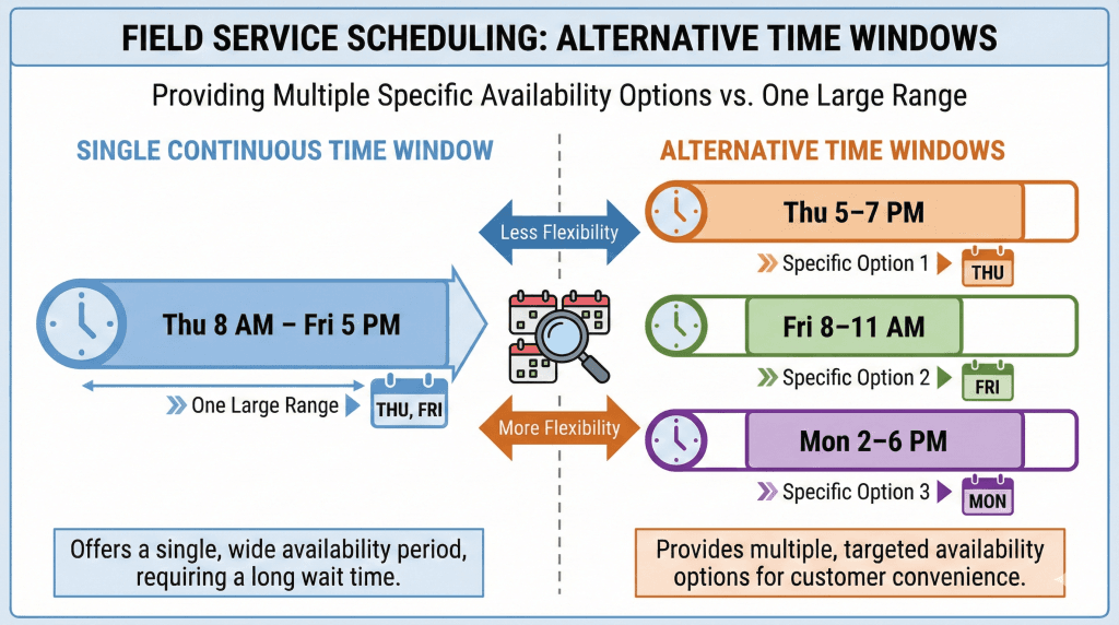 What are alternative time windows in field service scheduling?