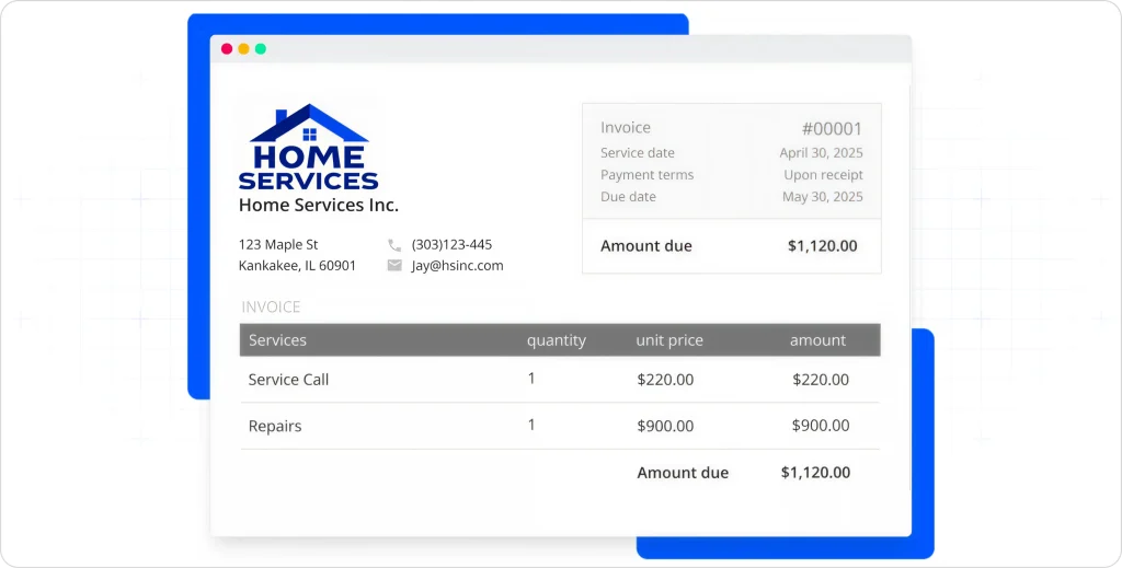 The annoying gap: Housecall Pro doesn’t automatically turn tracked time into invoice line items. You enter labor manually.